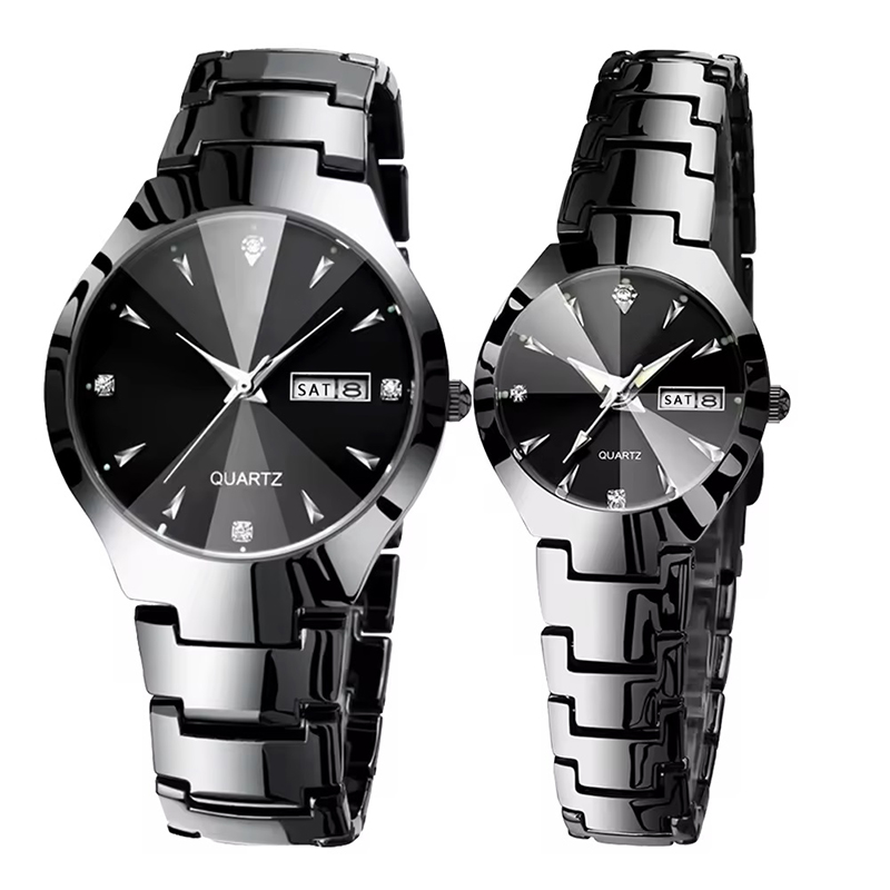 Couple watches all stainless steel gift wristwatches rose gold silver black lovers watches a pair of watches high quality