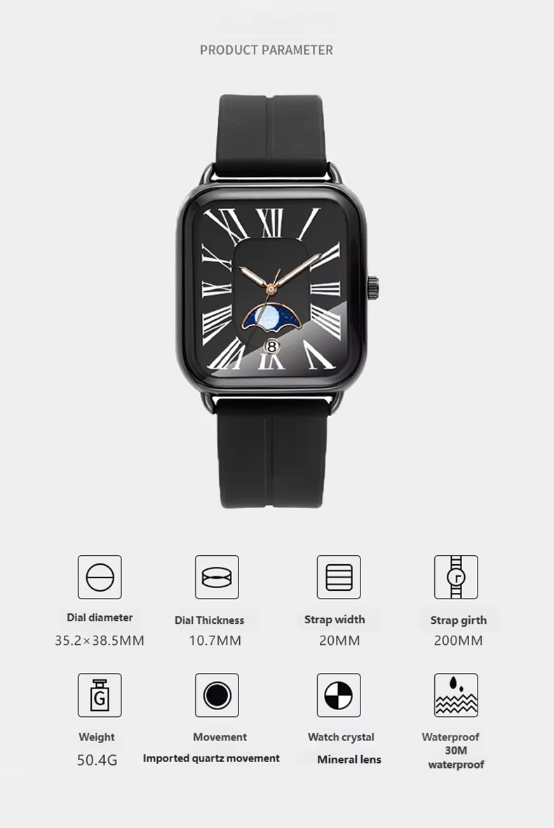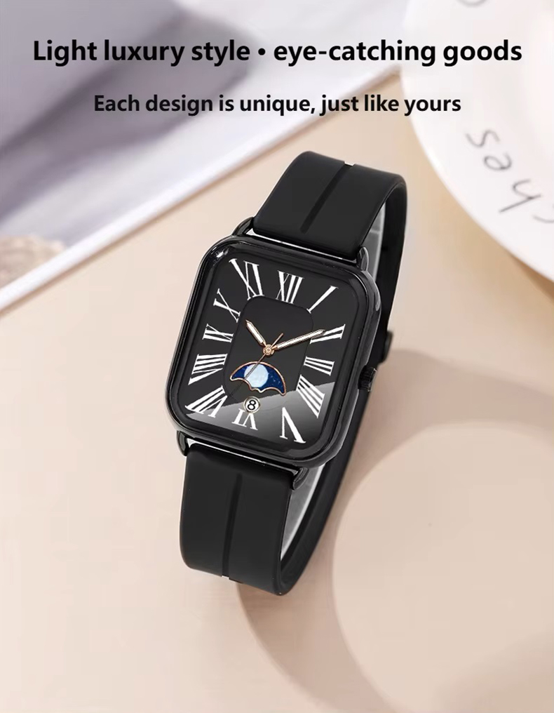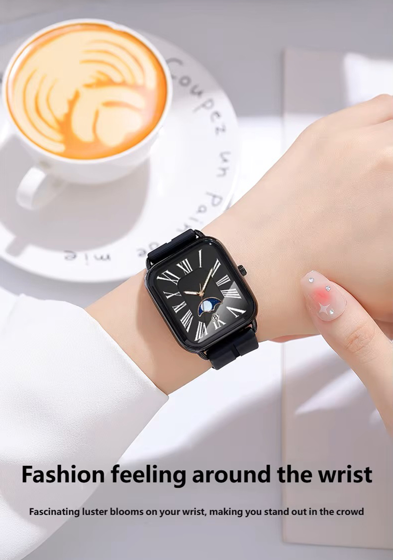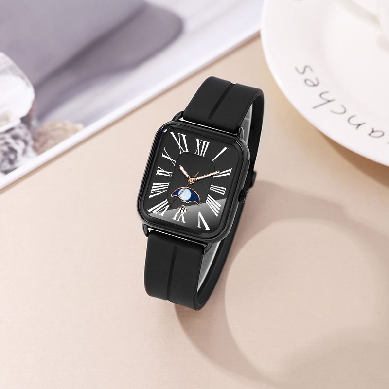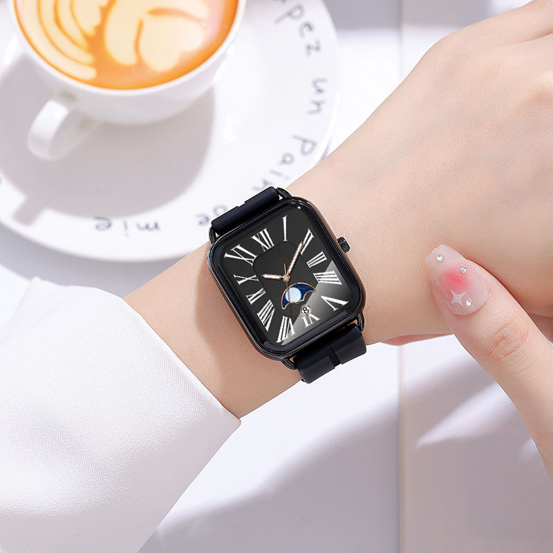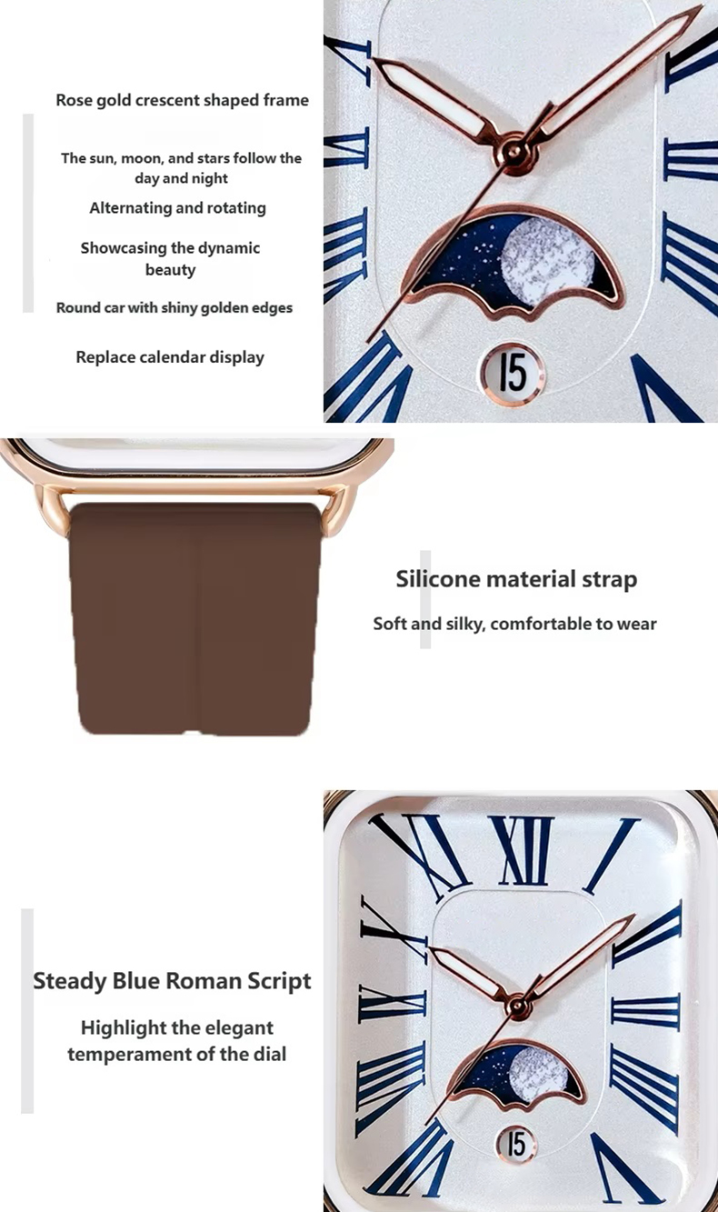 Fashion watch woman rectangular rose gold silicone strap luminous watch hands woman wristwatch calendar moonphase