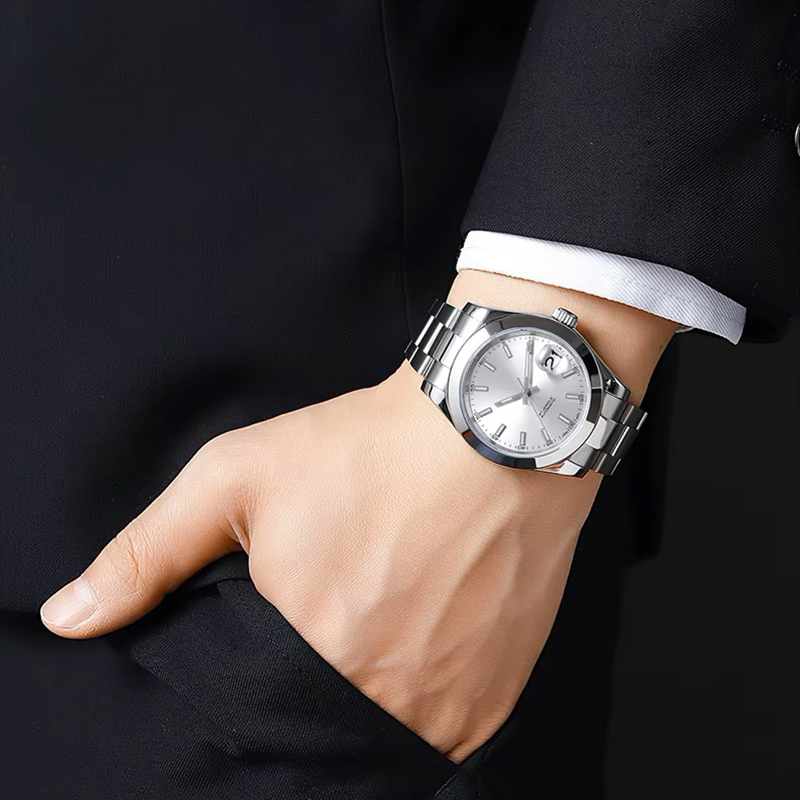 All stainless steel man watches automatic custom logo OEM customized mechanical watches in China silver sunray dial