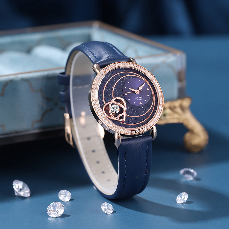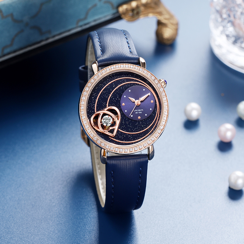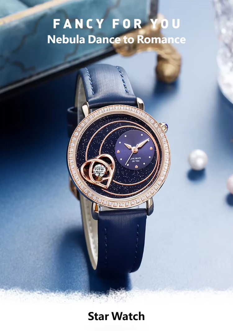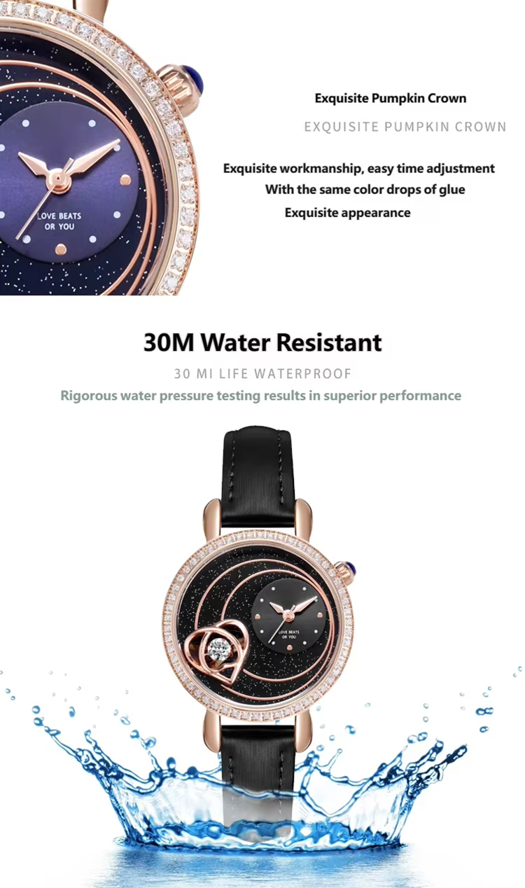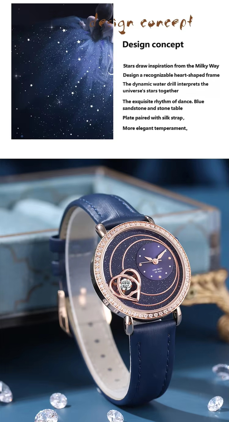 Starry sky watch woman fashion luxury classic casual cute leather strap quartz wristwatch lady girl heart-shaped diamond
