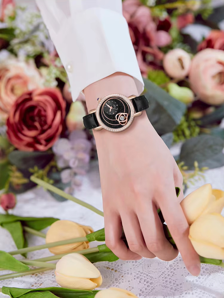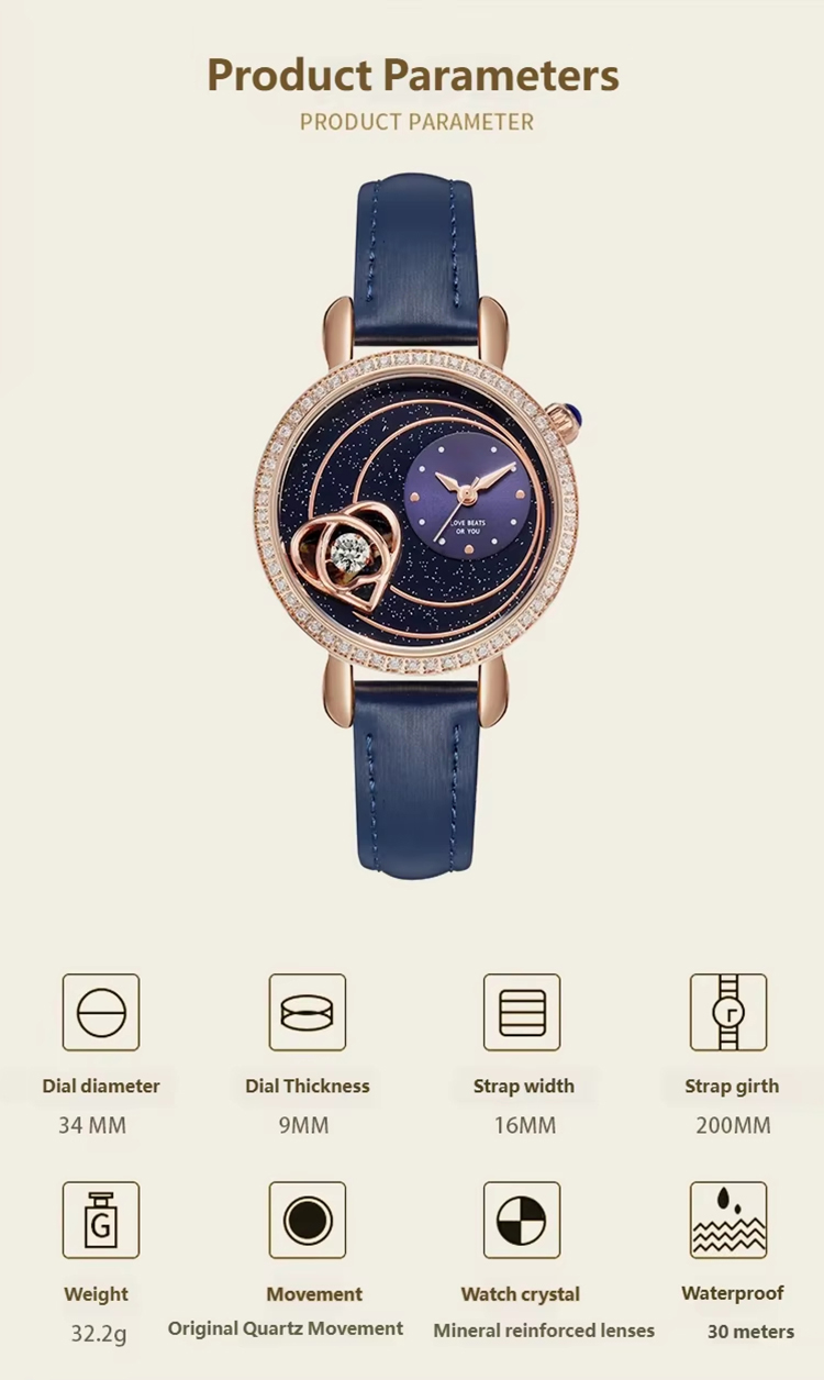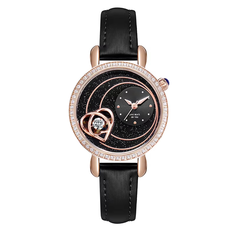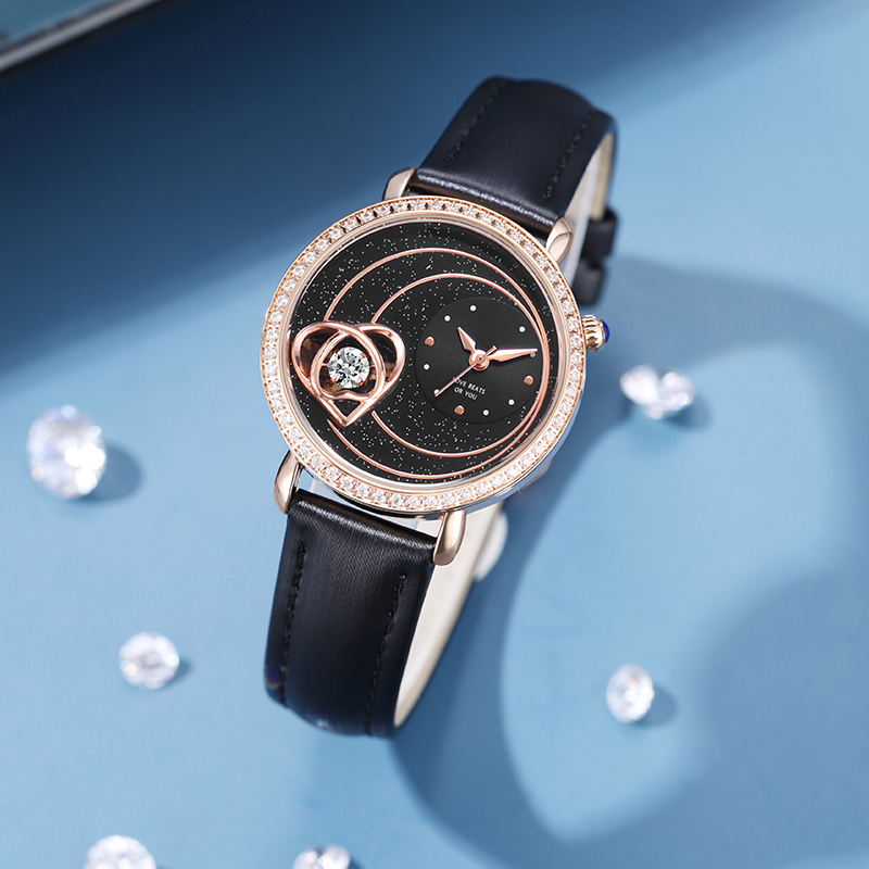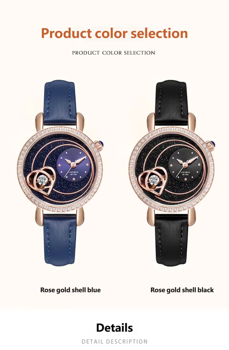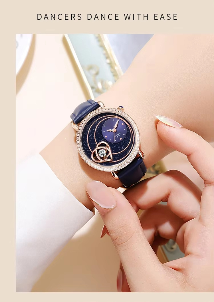 Starry sky watch woman fashion luxury classic casual cute leather strap quartz wristwatch lady girl heart-shaped diamond