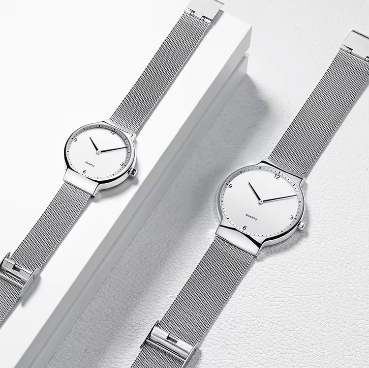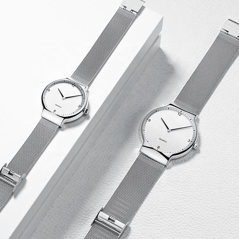 Wholesale couple watches luxury lover watches stainless steel mesh strap mesh band quartz wristwatch factory in China