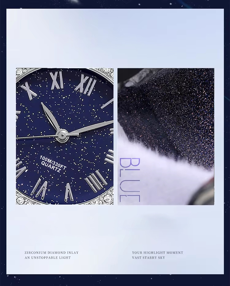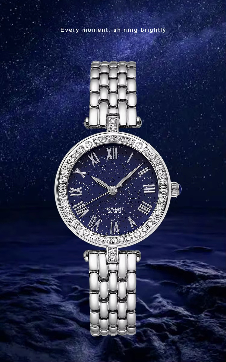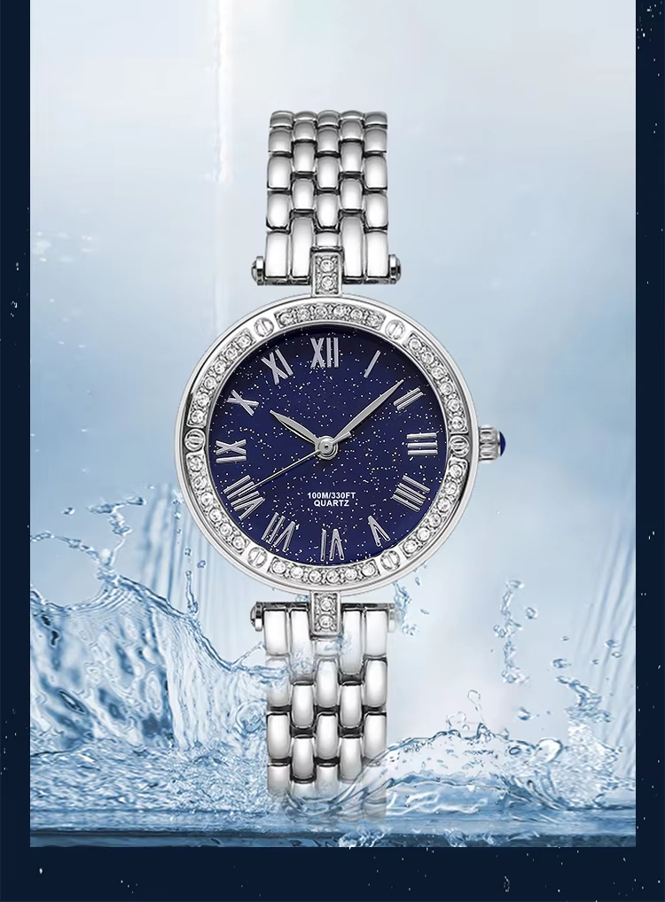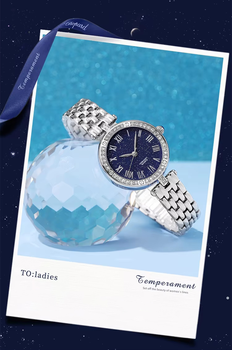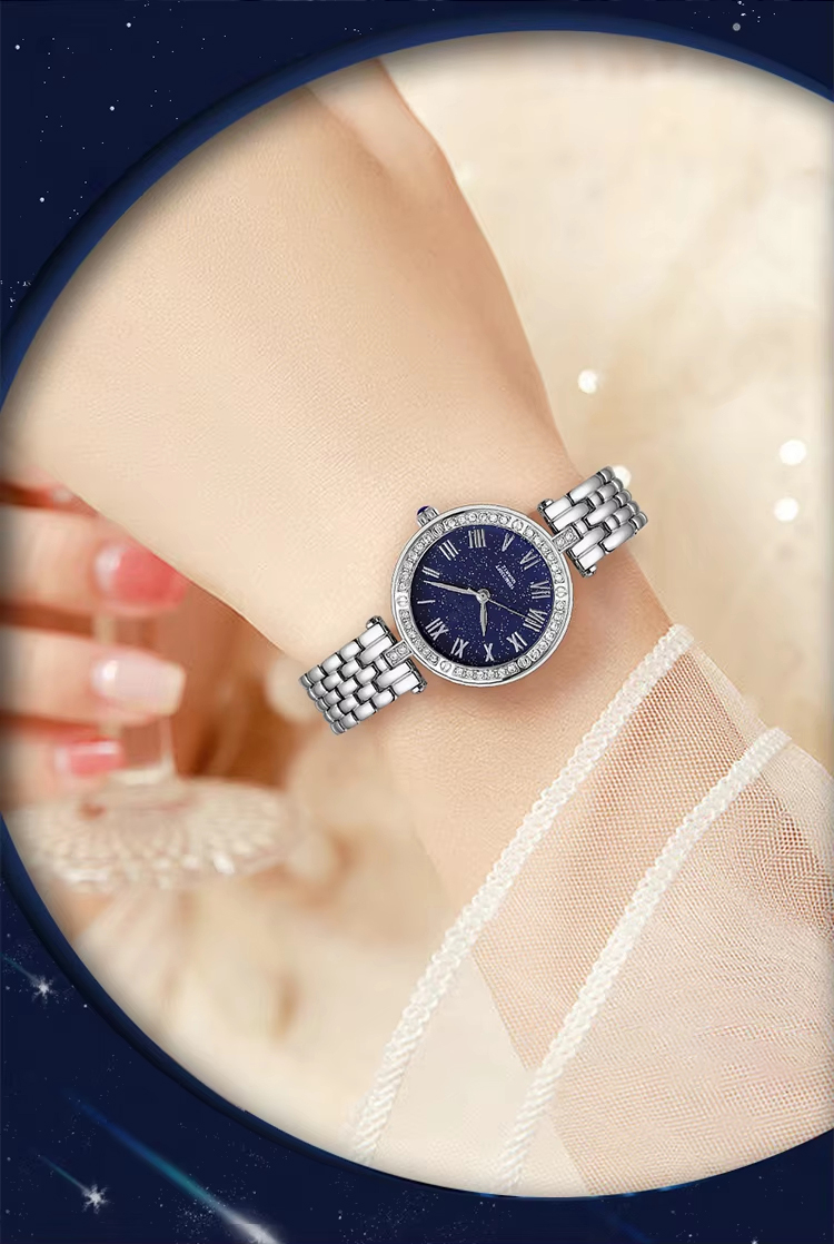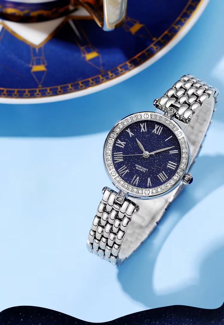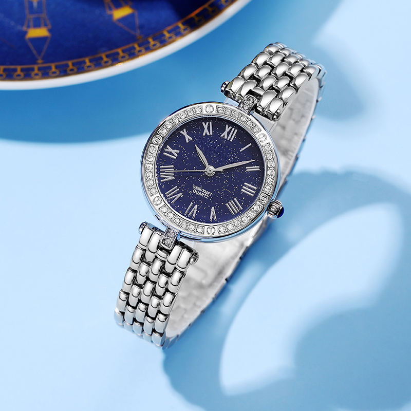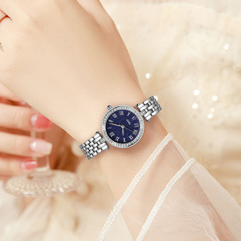 Woman watch small round starry sky blue lady watch diamond girl watch steel watch band China wristwatch manufacturer